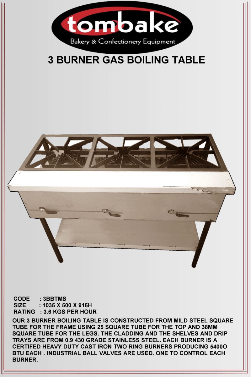 3-burner gas boiling table – free-standing standard